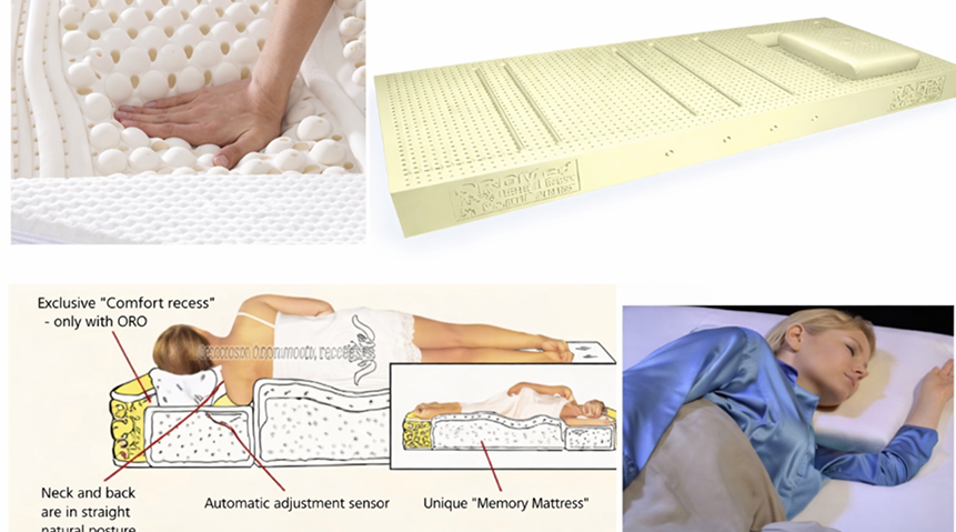 International patents have been granted for the ORO Automatically Adjustable Bed and Latex Mattress, which features a unique Pressure Relief Comfort Recess.